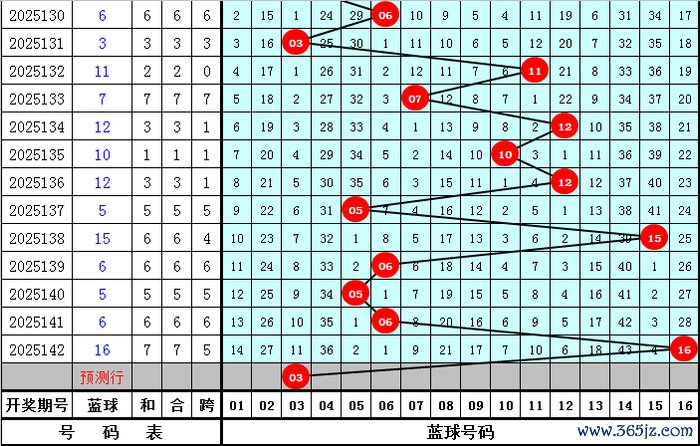 蓝球分析:上期开出蓝球奖号16为偶数、大号。