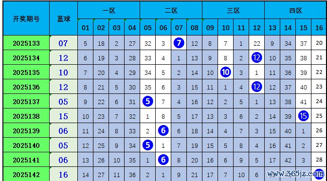 蓝球分析:上期开出偶数号码16,统计近10期的蓝球号码奇偶比4:6。偶数号码出号较热度较高,本期展望开突出数号码,蓝球参考:05。
